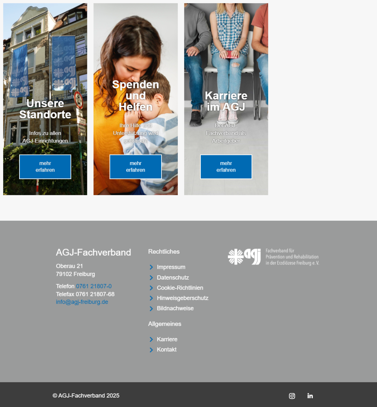 11. AGJ Fachverband – Der AGJ-Fachverband für Prävention und Rehabilitation in der Erzdiözese Freiburg e.V. begleitet Menschen in vielfältigen Lebenslagen und Problemsituationen.